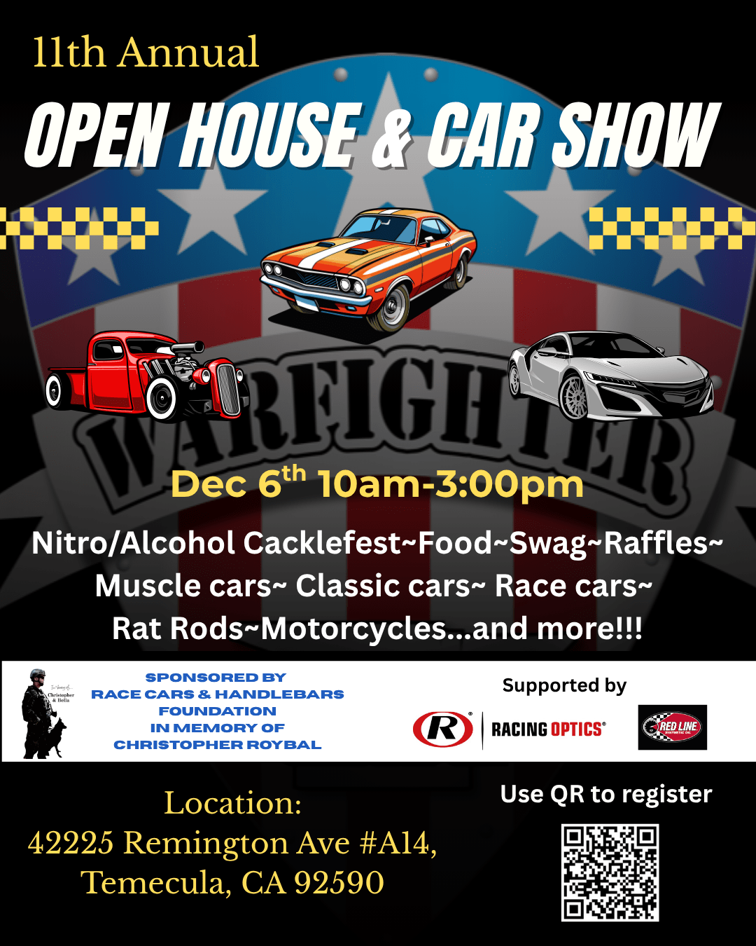 Come enjoy a fun filled day of muscle cars, classic cars, hot rods, and more! Over 50 cars will be on display, as well as a bounce house for the kids, raffles, free swag, and so much more! This is a free event, open to the public. Join us by registering on our website. If you have a car you'd like to enter, you can do that on our site, too! What a great way to come together and celebrate another amazing year!Images