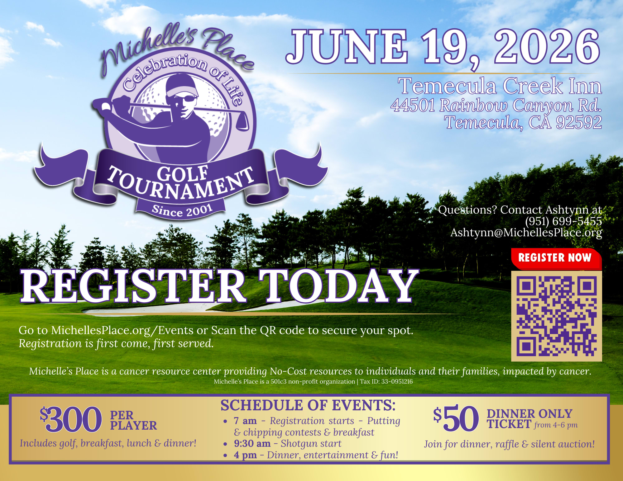 For more information, contact ashtynn@michellesplace.org We look forward to seeing you on the course in Temecula.