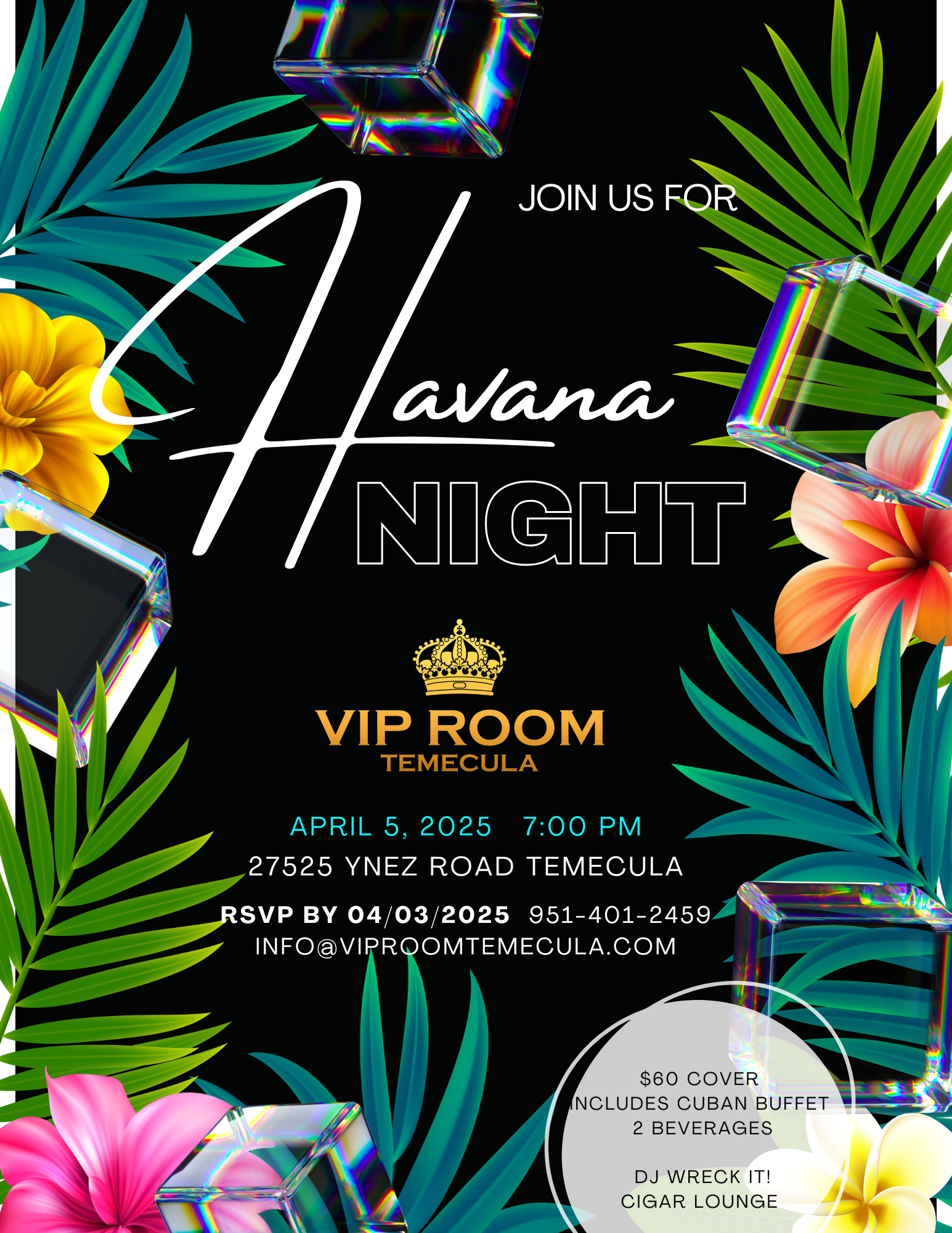 X-ALT-DESC;FMTTYPE=text/html:<!DOCTYPE html><html><head><title></title></head><body aria-disabled="false"><div data-testid="aboutThisEvent" style='margin: 0px\; padding: 0px\; box-sizing: border-box\; color: rgb(57\, 54\, 79)\; font-family: "Neue Plak"\, -apple-system\, BlinkMacSystemFont\, Roboto\, "Helvetica Neue"\, Helvetica\, Tahoma\, Arial\, sans-serif\; font-size: 14px\; font-style: normal\; font-variant-ligatures: normal\; font-variant-caps: normal\; font-weight: 400\; letter-spacing: normal\; orphans: 2\; text-align: start\; text-indent: 0px\; text-transform: none\; widows: 2\; word-spacing: 0px\; -webkit-text-stroke-width: 0px\; white-space: normal\; background-color: rgb(255\, 255\, 255)\; text-decoration-thickness: initial\; text-decoration-style: initial\; text-decoration-color: initial\;'><div style="margin: auto\; padding-top: \; padding-right: 0px\; padding-bottom: \; padding-left: 0px\; box-sizing: border-box\; -webkit-box-flex: 1\; flex: 1 1 0%\;"><div style="margin: 0px 0px 24px\; padding: 0px\; box-sizing: border-box\;"><div style="margin: 0px\; padding: 0px\; box-sizing: border-box\; display: flex\; -webkit-box-orient: vertical\; -webkit-box-direction: normal\; flex-direction: column\;"><div style="margin: 0px\; padding: 0px\; box-sizing: border-box\;"><div style="margin: 0px\; padding: 0px\; box-sizing: border-box\; overflow: hidden\; transition: max-height 0.5s ease-in-out\; max-height: 100%\;"><div style="margin: 24px 0px\; padding: 0px\; text-rendering: optimizelegibility\; font-size: 0.875rem\; font-weight: 400\; line-height: 1.25rem\; box-sizing: border-box\;"><div style="margin: 0px\; padding: 0px\; text-align: left\; box-sizing: border-box\;"><p style="margin: 0px\; padding: 10px 0px 0px\; box-sizing: border-box\; font-size: 16px\; line-height: 1.5rem\; color: rgb(111\, 114\, 135)\;">Come join us for a night filled with vibrant music\, delicious food\, and exciting dance moves at the <strong fr-original-style="font-weight: 700\; box-sizing: border-box\; padding-top: 0px\;" style="font-weight: 700\; box-sizing: border-box\; padding-top: 0px\;"><strong fr-original-style="font-weight: 700\; box-sizing: border-box\; padding-top: 0px\;" style="font-weight: 700\; box-sizing: border-box\; padding-top: 0px\;">VIP Room</strong></strong>. Get ready to immerse yourself in the lively Cuban culture and dance the night away to infectious rhythms. DJ\, Cuban cigar rolling\, Salsa dancing\, this event is perfect for everyone. Don&#39\;t miss out on this unforgettable evening of fun and excitement!&nbsp\;</p><p style="margin: 0px\; padding: 10px 0px 0px\; box-sizing: border-box\; font-size: 16px\; line-height: 1.5rem\; color: rgb(111\, 114\, 135)\;"><img src="https://res.cloudinary.com/micronetonline/image/upload/c_limit\,w_1545\,h_2000/v1743023128/tenants/11f41d76-5feb-4fac-bfa5-27e54348076a/3edf8266f4cf419aa221bb05c0cc0a54/Havana-Night.png" width="791" height="1024" fr-original-style="" fr-original-class="fr-draggable" style="position: relative\; max-width: 100%\; cursor: pointer\; padding: 0px 1px\;"><br></p></div></div></div></div></div></div></div></div><div data-testid="tags" style='margin: 0px\; padding: 0px\; box-sizing: border-box\; color: rgb(57\, 54\, 79)\; font-family: "Neue Plak"\, -apple-system\, BlinkMacSystemFont\, Roboto\, "Helvetica Neue"\, Helvetica\, Tahoma\, Arial\, sans-serif\; font-size: 14px\; font-style: normal\; font-variant-ligatures: normal\; font-variant-caps: normal\; font-weight: 400\; letter-spacing: normal\; orphans: 2\; text-align: start\; text-indent: 0px\; text-transform: none\; widows: 2\; word-spacing: 0px\; -webkit-text-stroke-width: 0px\; white-space: normal\; background-color: rgb(255\, 255\, 255)\; text-decoration-thickness: initial\; text-decoration-style: initial\; text-decoration-color: initial\;'><div style="margin: auto\; padding-top: \; padding-right: 0px\; padding-bottom: \; padding-left: 0px\; box-sizing: border-box\; -webkit-box-flex: 1\; flex: 1 1 0%\;"><section aria-labelledby="tags-heading" style="display: block\; box-sizing: border-box\;"><div style="margin: 0px 0px 48px\; padding: 0px\; box-sizing: border-box\;"><div style="margin-top: 0px\; margin-right: 0px\; margin-bottom: calc(var(--base-unit)*2)\; margin-left: 0px\; padding: 0px\; box-sizing: border-box\; color: rgb(30\, 10\, 60)\; font-size: 1.5rem\; font-weight: 700\; line-height: 1.75rem\;"><br></div></div></section></div></div></body></html>